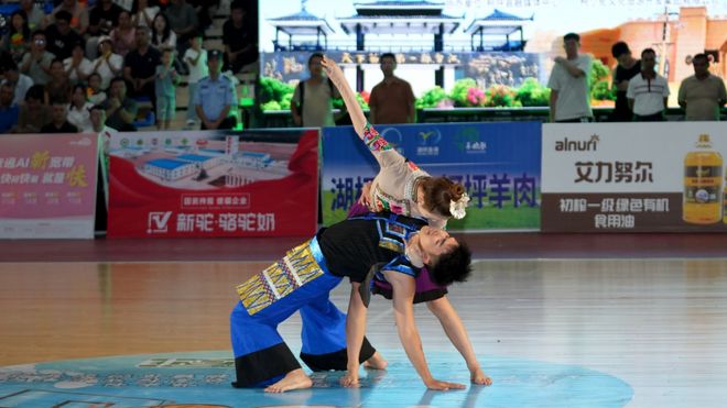 赛场外,柯坪群众的热情同样高涨。“决赛每一次运球、每一次投篮都让人揪心,比分咬得太紧了!”柯坪县群众徐梦菲说,除了精彩赛事,贵州苗族特色的《锦鸡舞》《反排木鼓舞》等节目更让她感受到多民族文化的交融之美,“这种‘体育+文化’的活动,让大家的心贴得更近了。”